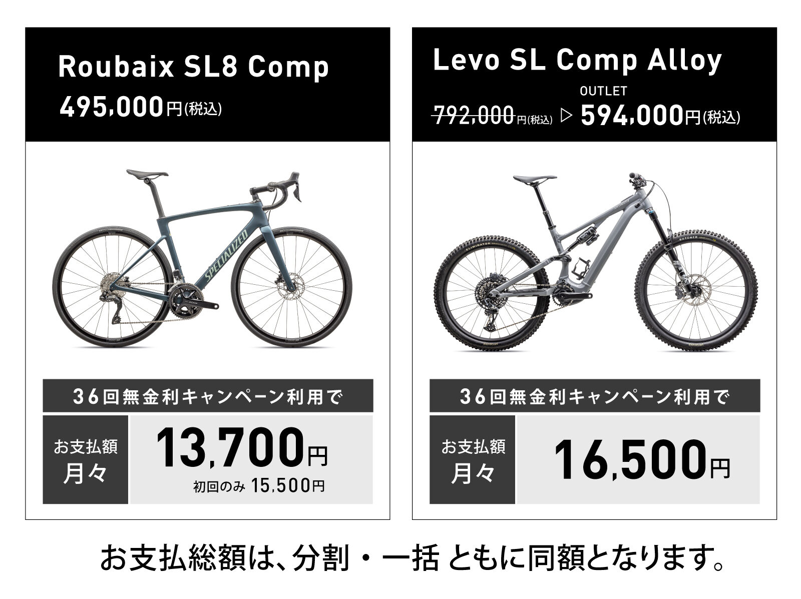 - 支払い条件:36回払いまでは金利手数料無料、48回払いは金利手数料の一部をスペシャライズドが負担