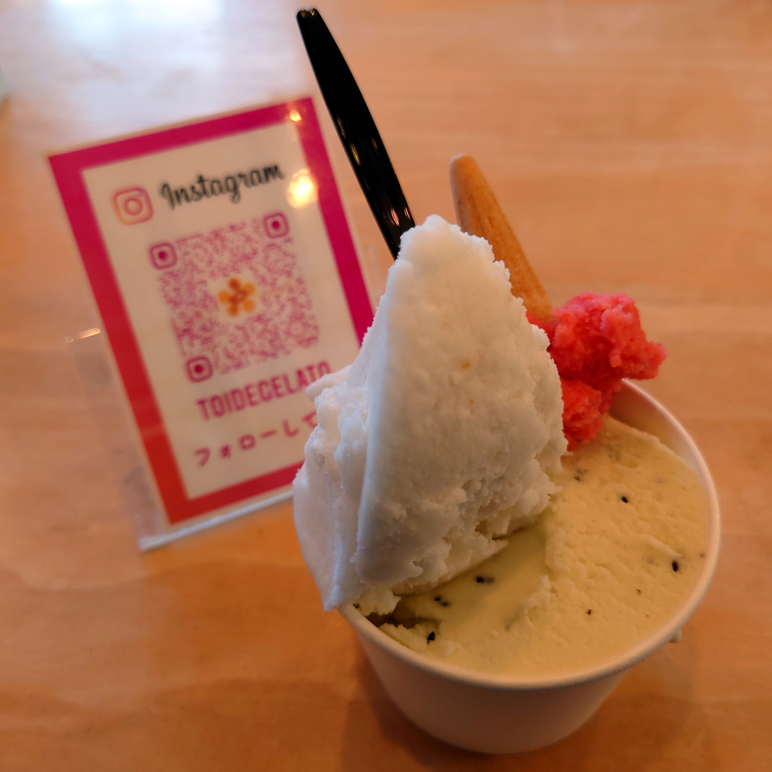 辛さの存在感がある胃袋を抱えて3km走ってデザートタイム。ジェラートの甘さと冷たさで相殺。